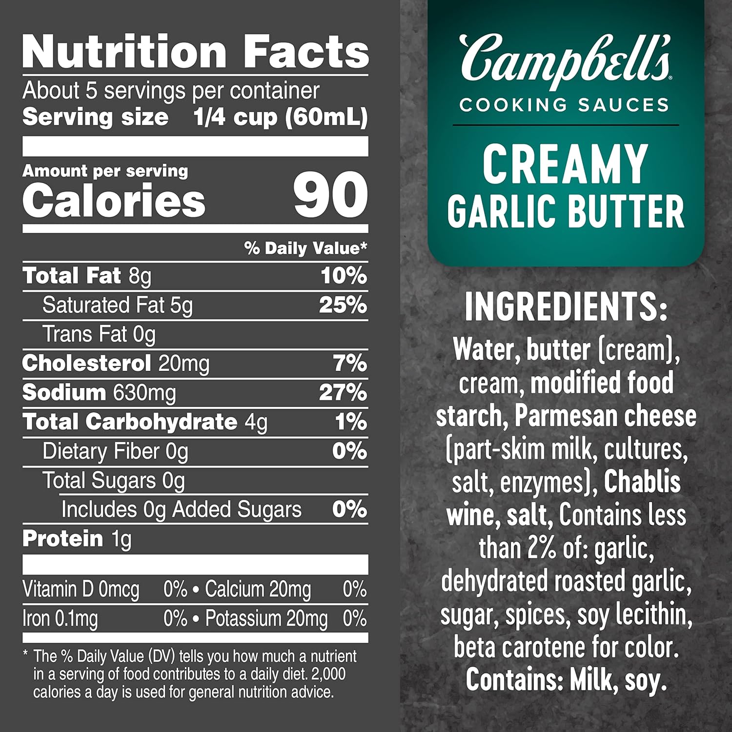 Campbell’s Cooking Sauces, Creamy Garlic Butter Sauce, 12 Oz Pouch